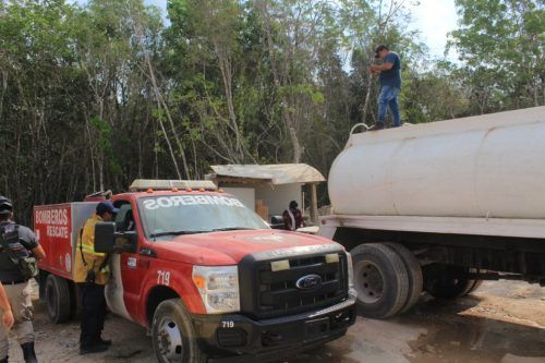 Playa del Carmen, Quintana Roo, 29 de abril.-El Ayuntamiento de Solidaridad que preside Laura Beristain Navarrete con el apoyo de brigadistas de la Comisión Nacional Forestal (Conafor), atiende de manera directa los incendios que se han presentado durante la presente temporada, el más reciente ubicado al poniente de la ciudad y que se encuentra sofocado al 90%.