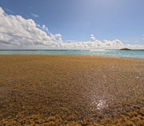 PLAYA DEL CARMEN, Quintana Roo, 08 de enero de 2026.— De manera inusual y fuera de temporada, un extenso manchón de sargazo arribó al litoral de Playa del Carmen, específicamente en la zona de Playa Mamitas, lo que encendió alertas entre autoridades y ciudadanos, al tratarse de un fenómeno poco común durante el invierno.