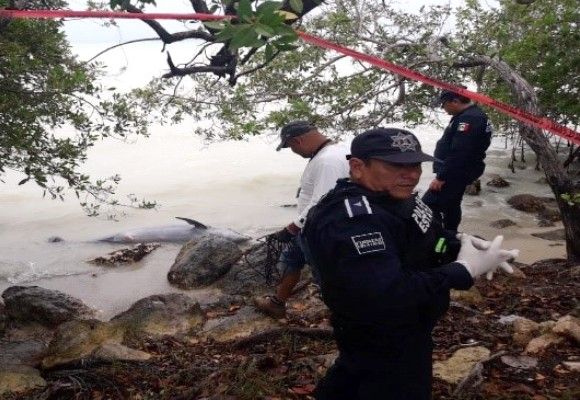 Inspectores federales de la PROFEPA constataron que el ejemplar se encontraba sin vida con principio de descomposición; al realizar la revisión médico veterinaria por personal especializado de la Universidad de Quintana Roo se observó marcas de líneas superficiales en el cuerpo, epidermis desprendida entre aleta izquierda y hocico sin lesiones o heridas en el cuerpo, el ejemplar pertenece a la especie tursiops trucatus (Delfín Nariz de Botella) de 2.25 metros de longitud, sexo macho.