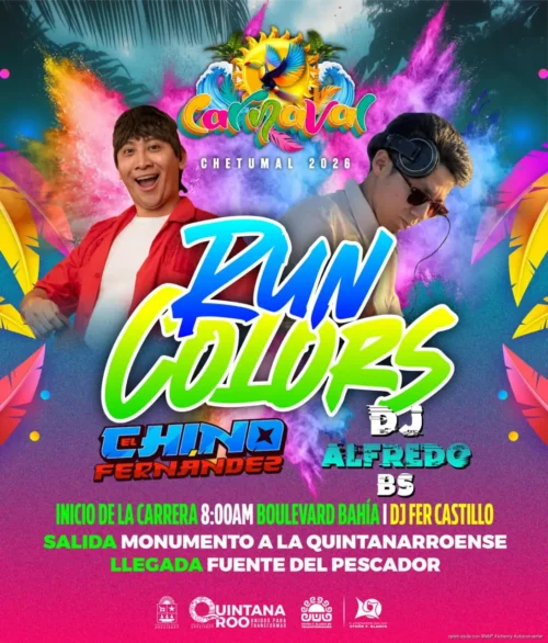 CHETUMAL, Quintana Roo, 11 de febrero de 2026.- Actívate, llénate de colores y diviértete sanamente en la Run Colors del Carnaval Chetumal 2026, que tendrá lugar este 17 de febrero en el Boulevard Bahía de Chetumal.