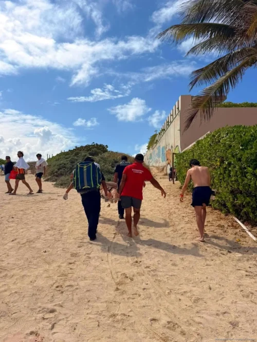 CANCÚN, 3 de abril de 2026.-Un joven de 23 años estuvo a punto de perder la vida en la playa de San Miguelito en la zona hotelera de Cancún, luego de ser arrastrado por la corriente marina cuando intentó salvar a su amigo quien minutos antes había entrado al agua.