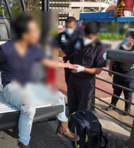 La policía turística llegó al lugar para tomar el control del asunto y mediante una credencial de lector logró conocer su identidad y pedir apoyo médico y familiar.