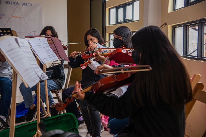 “Ellos viven mucha violencia, disparos, enfrentamientos entre grupos, entre otras cosas que suceden acá”, contó a Efe Jorge Guillén, fundador del colectivo Sociedad en Acción y coordinador del coro y la sinfónica.
