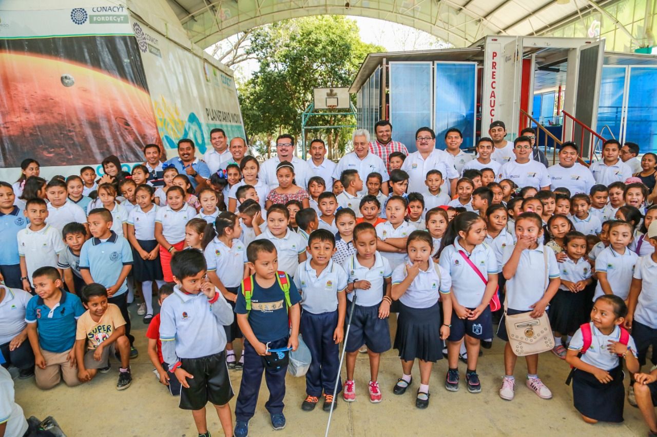 Por último, aprovechó la ocasión para dar una amplia explicación a los niños de qué es lo que apreciarán durante su estancia en los dos vehículos y el planetario, beneficios que recibirán los estudiantes de la zona maya durante una semana de presencia en Cobá, por lo que agradeció las facilidades otorgadas por el presidente municipal, Víctor Mas Tah para la presencia de los vehículos de la ciencia y tecnología en este destino turístico.