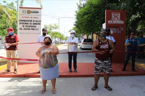 PLAYA DEL CARMEN, Quintana Roo, 9 de julio.-Entregan obras de repavimentación de calles en la colonia Luis Donaldo Colosio, en el tramo que comprende la avenida 10 con la calle 86 Norte, que mejoran la imagen urbana y la movilidad social.