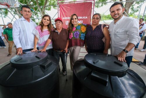 Teodoro Mexicano y Magdalena Zárate, de San Ramón Bacalar, recibieron sendos tinacos de Apoyos del Bienestar para reponerse de las afectaciones que sufrieron por las pasadas inundaciones.