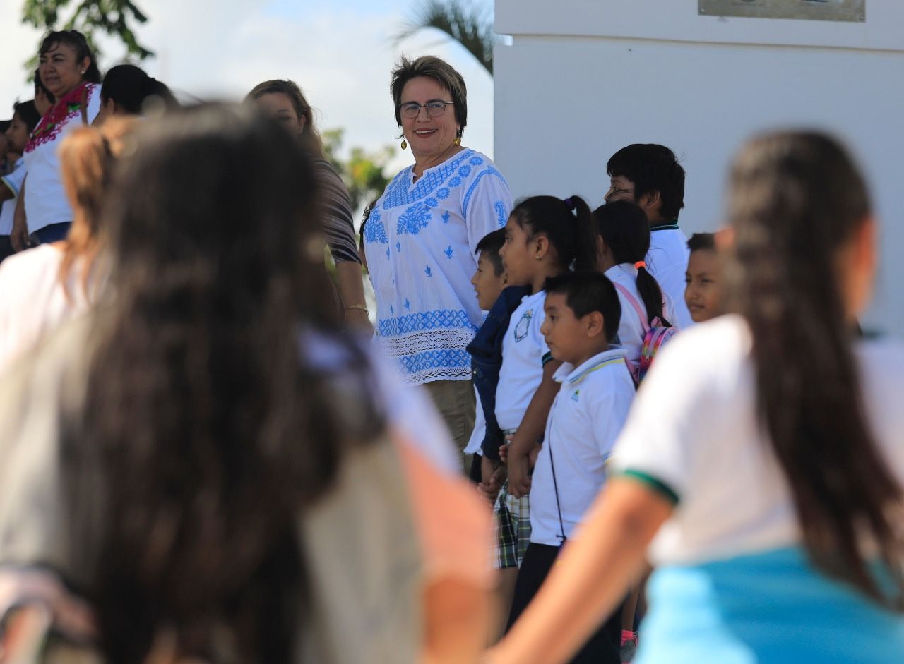 Este martes, Laura Beristain, acudió al teatro para saludar a cerca de 400 niños de la escuela primaria “Eduardo Priego León” con quienes platicó y tuvo oportunidad de convivir con ellos y sus maestros, no sin antes agradecerles por su gran participación en esta actividad con la que se fortalece el tejido social.