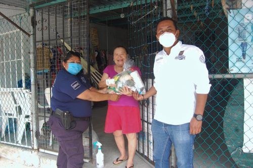 PLAYA DEL CARMEN, Quintana Roo, 6 de julio.-Se hizo entrega de apoyo alimentario y de higiene a los 200 adultos mayores pertenecientes al programa de Vigilantes Ciudadanos, que continúan en sus hogares bajo resguardo, sin acudir a laborar y con goce de sueldo, con el objetivo de proteger su salud y brindarles la ayuda necesaria para afrontar la emergencia sanitaria por COVID-19.