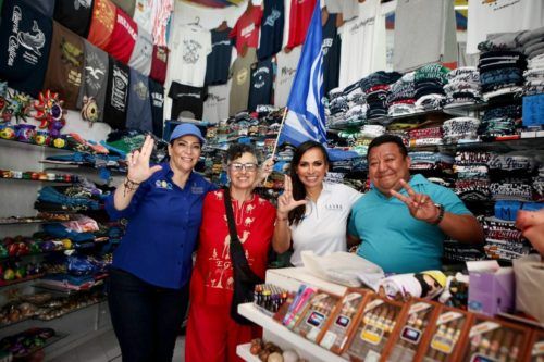Durante su recorrido estuvo acompañada del dirigente estatal del PAN, Faustino Uicab y Adriana Teissier, candidata por el Distrito I.