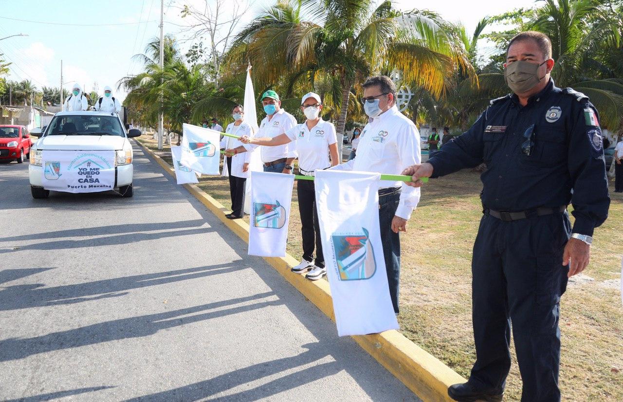 PUERTO MORELOS, Quintana Roo, 17 de abril de 2020.- La alcaldesa Laura Fernández Piña dio el banderazo de arranque del programa emergente de sanitización masiva en Puerto Morelos, como parte de las acciones preventivas para hacerle frente a la emergencia sanitaria generada por la pandemia del coronavirus (Covid-19).