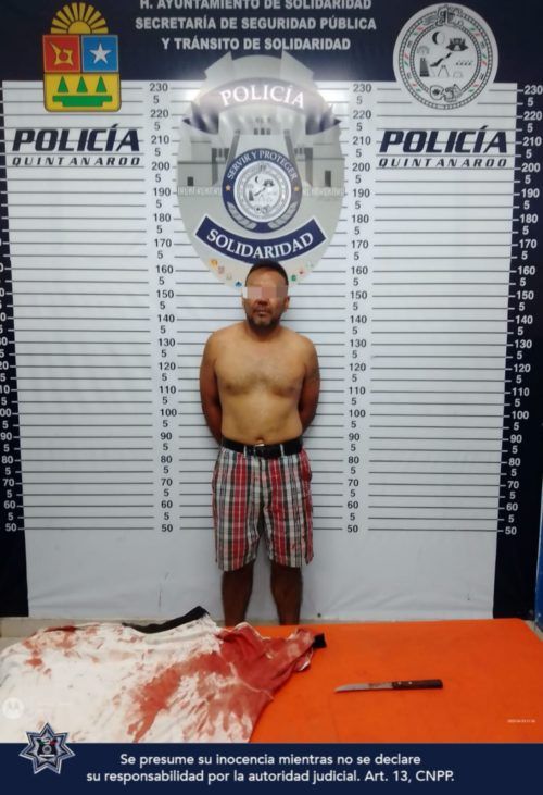 PLAYA DEL CARMEN, Quintana Roo, 24 de abril.- Policías de la Secretaría de Seguridad Pública y Tránsito Municipal de Solidaridad aseguraron a un sujeto por la posible comisión del delito de homicidio.