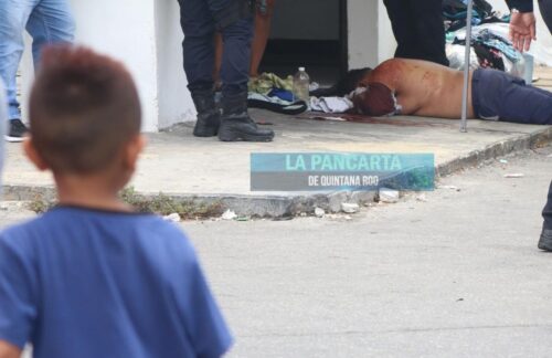 CANCÚN, Quintana Roo, 15 de mayo. – Le revientan la cabeza a balazos a hombre en la región 95 de Cancún frente a varias familias.