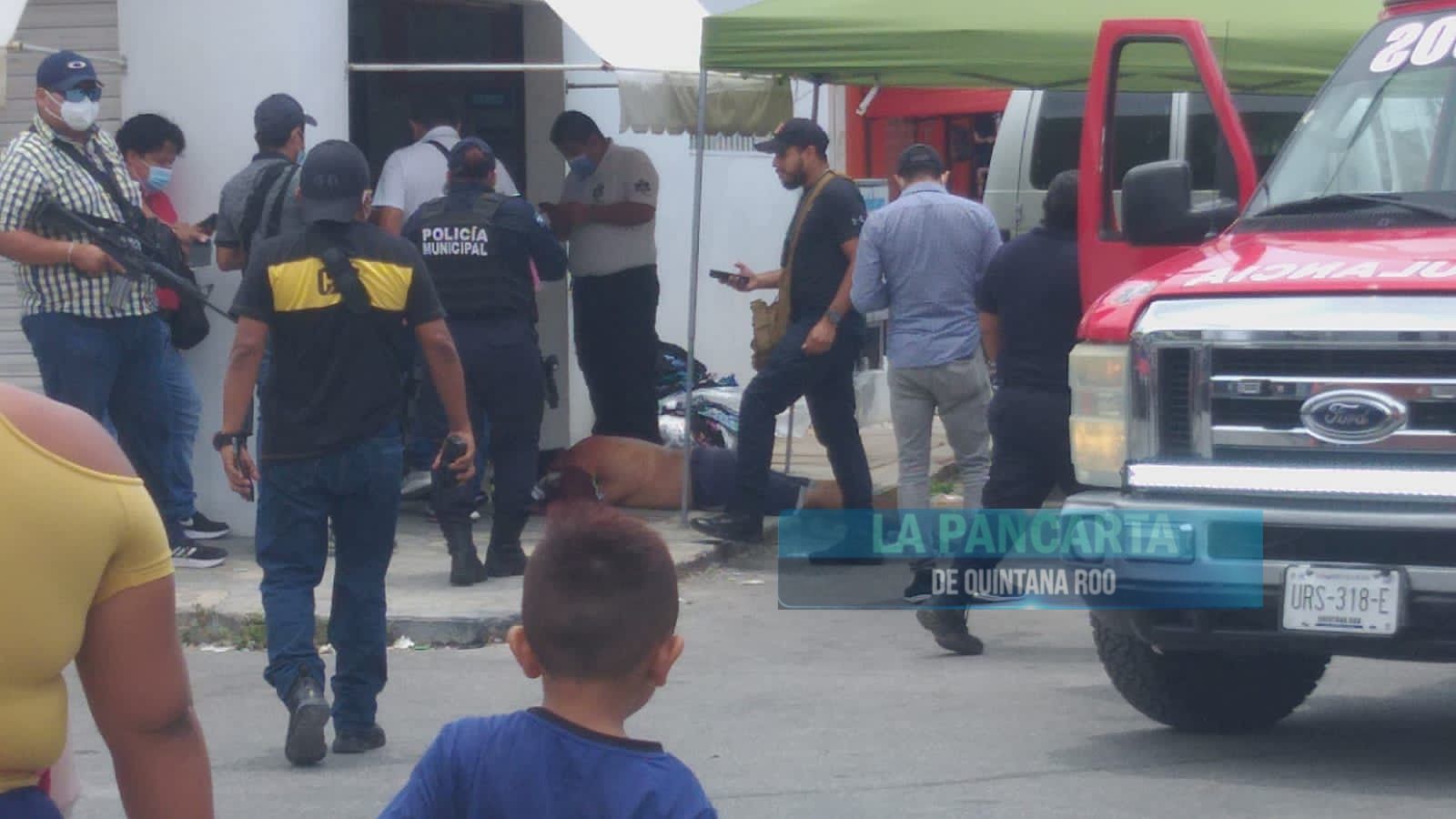 Al llegar los policías encontraron el cuerpo del hombre tirado boca abajo en una de las banquetas de la calle 105 en la esquina del mercadito por Maxicarne.