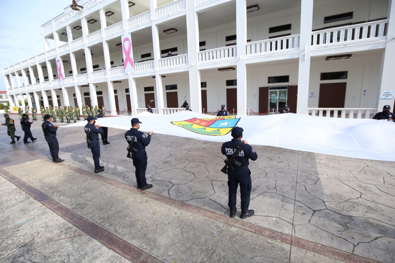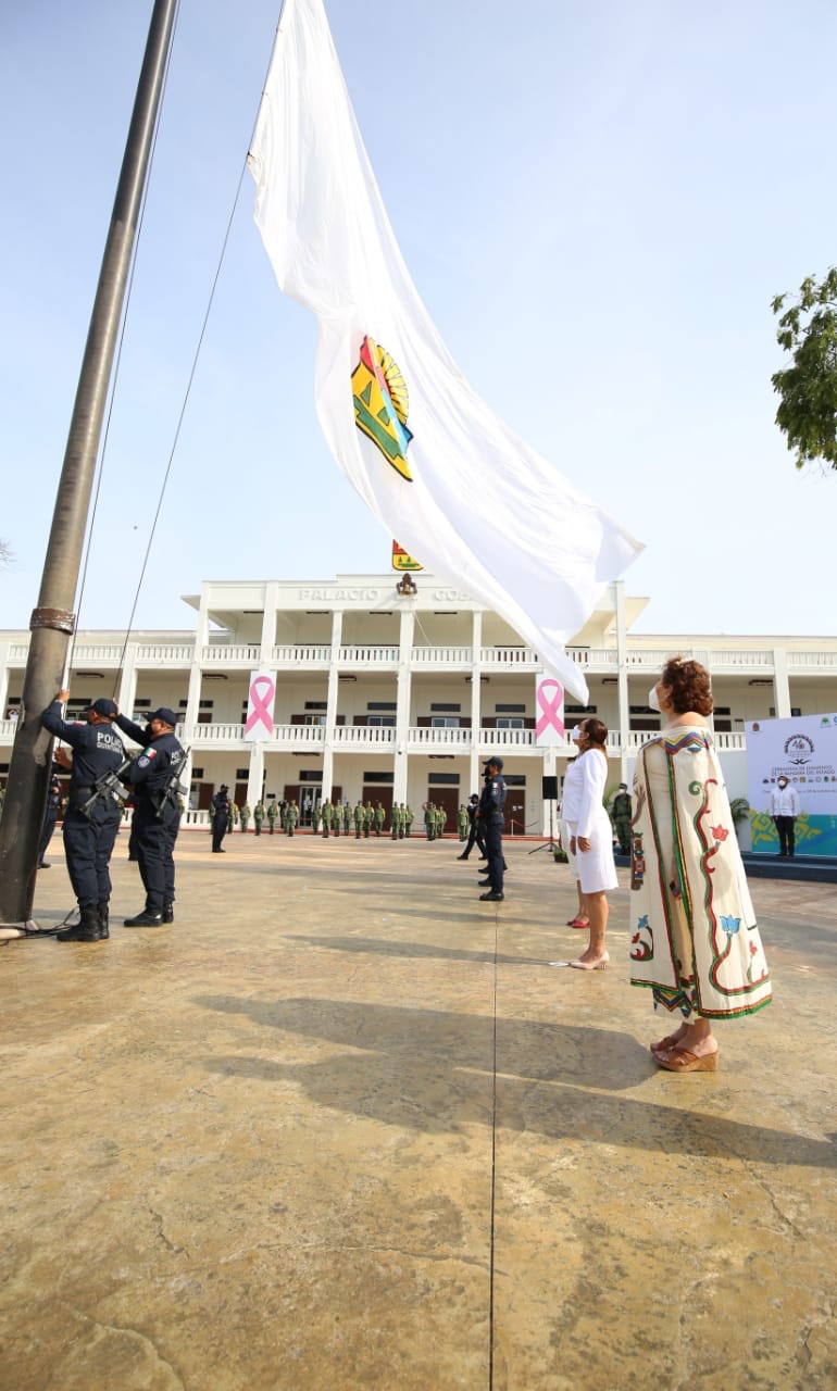 En Chetumal, frente a Palacio de Gobierno, se llevó a cabo el izamiento de la Bandera de Quintana Roo. En representación del gobernador Carlos Joaquín estuvo la titular de la Secretaría de Educación Ana Isabel Vázquez Jiménez.