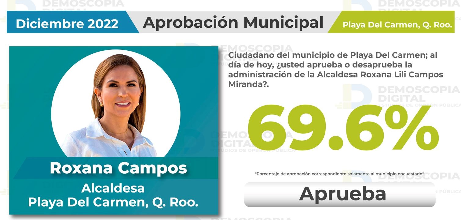 PLAYA DEL CARMEN, Quintana Roo, 08 de enero. – La presidenta municipal de Solidaridad, Lili Campos; se consolida y posiciona en el Ranking de Alcaldes de México, como la segunda mujer alcaldesa mejor calificada en el país y como la única quintanarroense en los primeros 10 puestos, con un puntaje de 69.6 por ciento de aceptación, por parte de la población solidarense.
