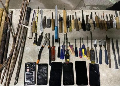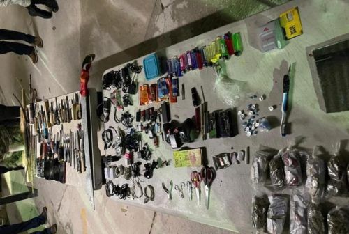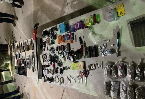 CANCÚN, Quintana Roo, 9 de enero.- Un operativo sorpresa en la cárcel de Cancún, dejó “incomunicados” a los internos, pues múltiples teléfonos celulares, armas blancas, y drogas fueron decomisadas por el Grupo de Coordinación Estatal para la Construcción de Paz y Seguridad en Quintana Roo.