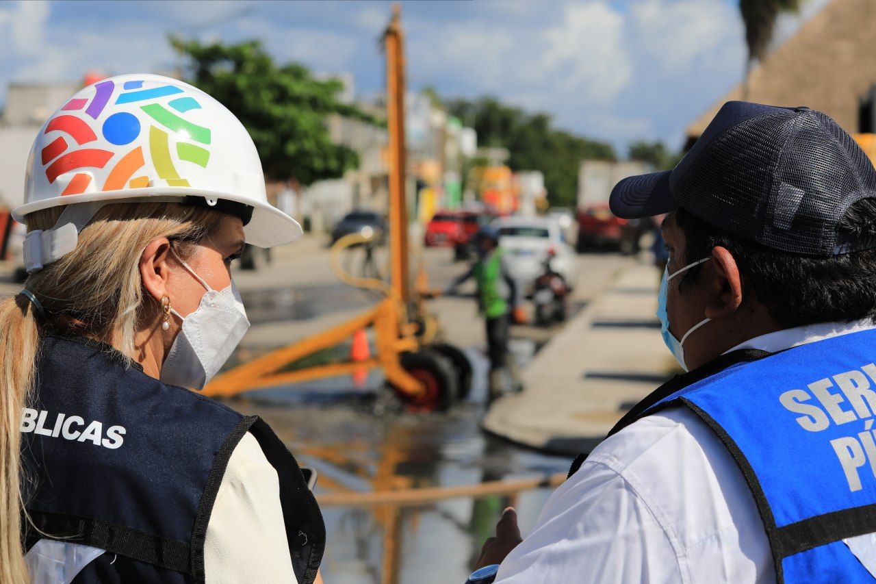 PLAYA DEL CARMEN, Quintana Roo, 10 de septiembre. – Resultado del trabajo constante en la construcción de pozos de absorción, así como la limpieza y desalzove, el gobierno municipal de Lili Campos ya logró mejorar el manejo del volumen de los encharcamientos en las últimas horas, debido a las lluvias.