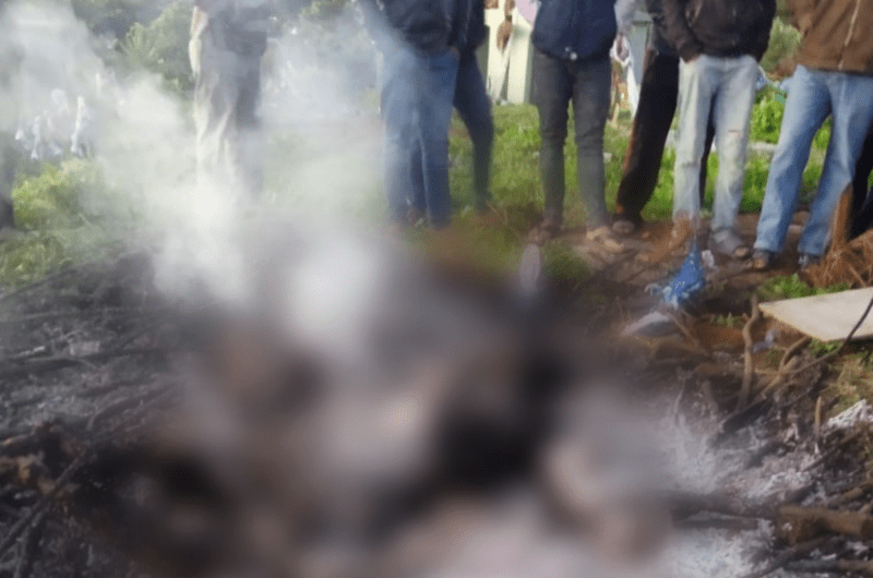 En los videos que circulan se ve el cuerpo del occiso quemado en su totalidad, con restos de alambre que aún eran notorios en los pies y manos, y sobre él una decena de leños que no se quemaron por completo.