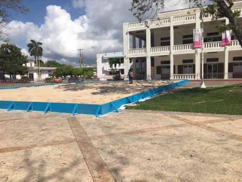 CHETUMAL, Quintana Roo, 30 de octubre.- Luego de que ayer comenzara a arribar la arena proveniente de Coatzacoalcos, Veracruz a la capital del estado, hoy ya se puede apreciar lista la primera de las cinco canchas que se crearán para el Tour Mundial de Voleibol Playero que se realizará por segundo año en esta ciudad.