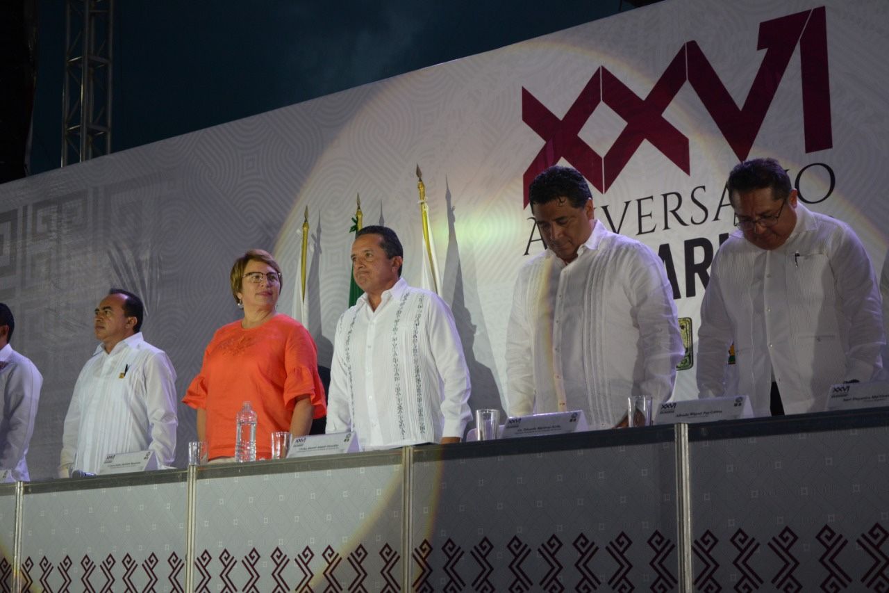 Recordó que hace 26 años (en 1993), cuando nació este municipio “éramos apenas 8 mil personas; hoy somos más de 400 mil habitantes. Esa diversidad y esa unión es la que nos hará invencibles, ¡No hay nada que pueda detenernos, nada!, ni el sargazo, ni tormentas, ni la inseguridad si nos mantenemos unidos”.
