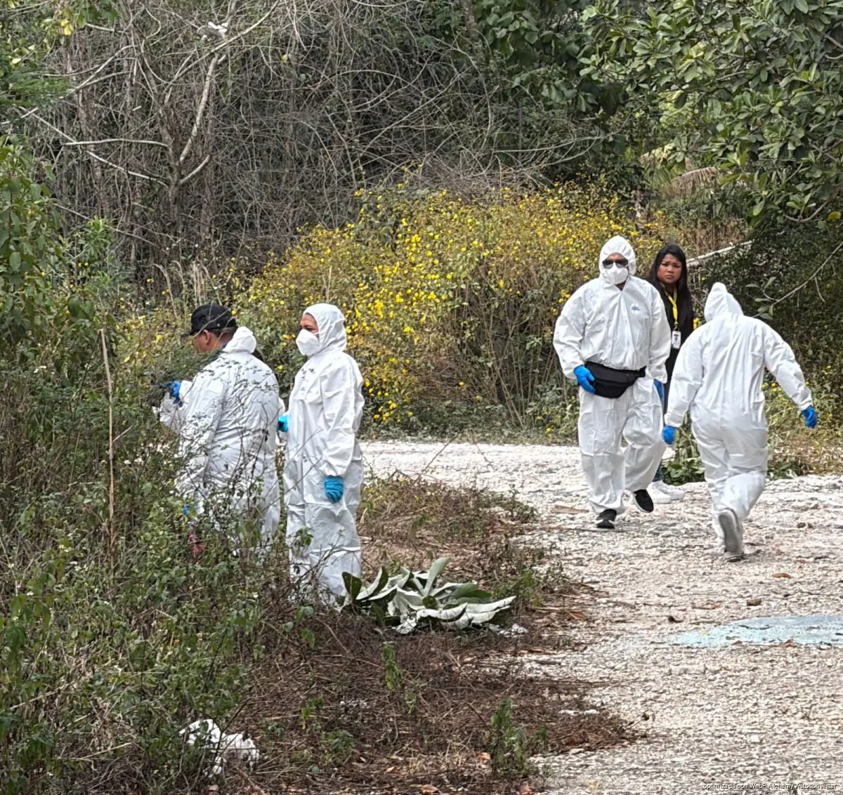Con esta información el personal del C5 notificó a las unidades operativas de la Policía Cancún, oficiales que se dirigieron al sitio, alrededor de las 10:30 de la mañana confirmaron que se trataba de un hecho positivo, en la colonia El Triángulo, localizada a tres kilómetros y medio de la avenida Portillo, motivo por el que se solicitó la presencia de la Fiscalía General del Estado.