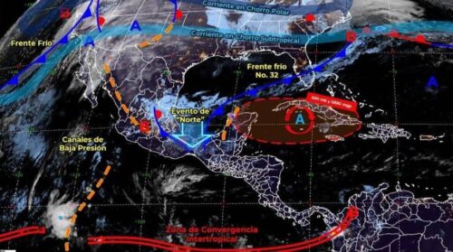 CHETUMAL, Quintana Roo, 28 de enero.- Avisa la Coordinación Estatal de Protección Civil de Quintana Roo sobre la llegada del frente frío número 32 a la Península de Yucatán generando bajas temperaturas y lluvias para las próximas horas.