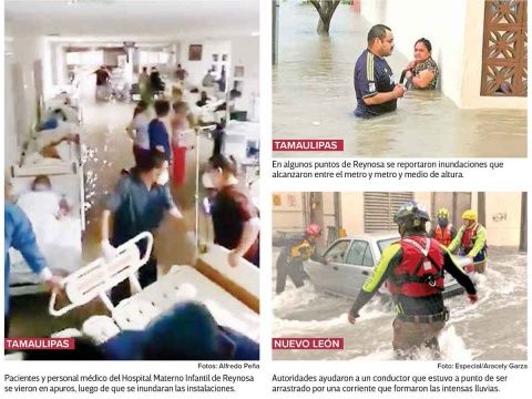 En Reynosa, Tamaulipas, las inundaciones dejaron severos estragos en diferentes puntos de la ciudad, entre ellos al Hospital Materno Infantil. La clínica, ubicada en la carretera a Monterrey, se convirtió en un peligro para quienes se recuperaban luego de dar a luz y para los bebés que estaban en cuneros e incubadoras.