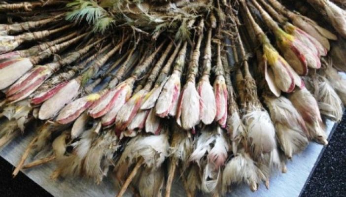 Cada una de estas flores está hecha de tejido de ave, que en uno de sus extremos fue retirado el pelambre de la pluma para formar una argolla, que por el material natural del que está hecho es muy resistente y se pudo colgar de la estructura central del llamado Penacho de Cuauhtémoc y así ha resistido el paso del tiempo.