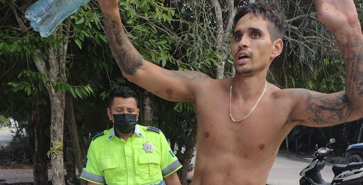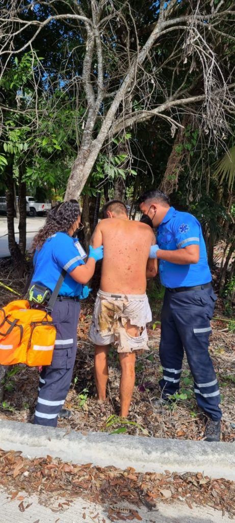 Mediante el reporte hecho por una ciudadana se dijo que la persona se encontraba en visible estado de deshidratación, sin camisa, descalzo y con lesiones que evidenciaban que el joven se extravío dentro de las espesas áreas verdes qué hay en las cercanías del fraccionamiento Aldea Zama.