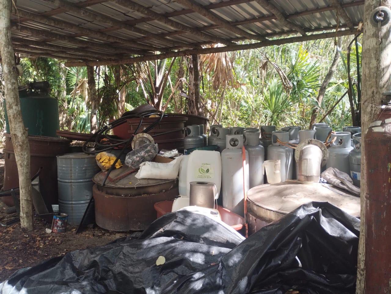 FELIPE CARRILLO, Quintana Roo, 10 de junio de 2025.– Como parte de un operativo interinstitucional, autoridades de los tres órdenes de gobierno localizaron un presunto laboratorio clandestino utilizado para la elaboración de drogas sintéticas en las inmediaciones del poblado de Petcacab, en la zona sur del estado de Quintana Roo.