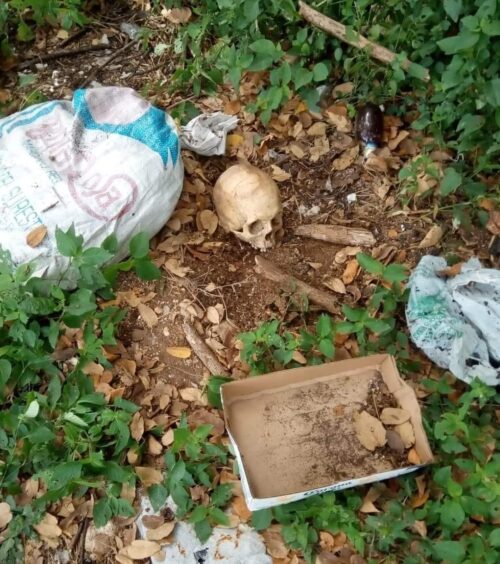 Una persona que paseaba a su mascota por el lugar vio a la entrada de un camino de terracería que conduce a la Bahía de Chetumal, un cráneo entre la maleza y cerca restos óseos. Dio parte a las autoridades.