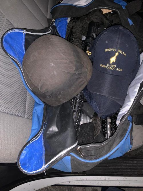 Cabe resaltar que, dentro de otros objetos asegurados, se encontró un casco de los utilizados por la Secretaria de Seguridad Pública, con una impresión con la leyenda “Archi”.
