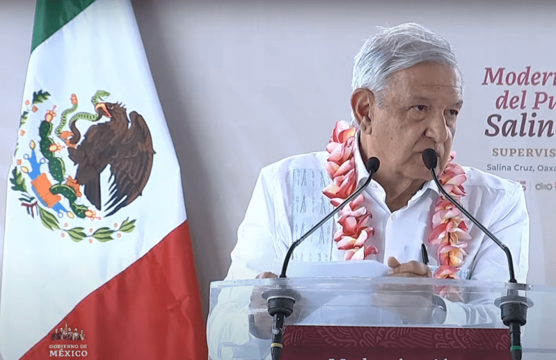 En el Puerto de Salina Cruz supervisó los avances del plan de modernización de la terminal portuaria y desde allí se comprometió con que al final de su mandato operará el Corredor Interoceánico del Istmo de Tehuantepec.