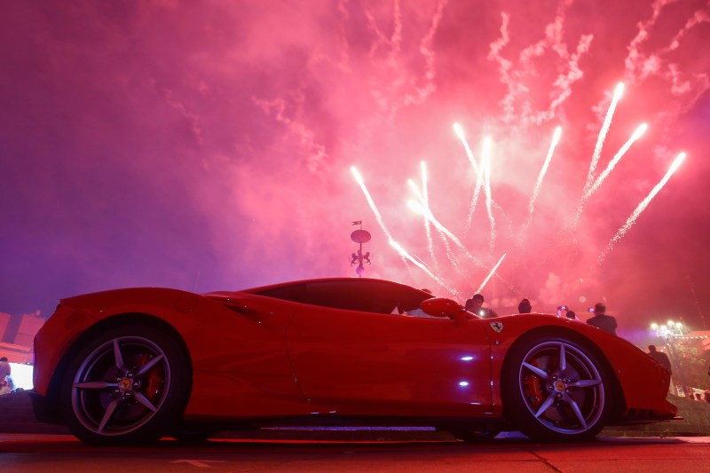 Los visitantes admiraron coches deportivos como un 360 Modena o un 488 GTB, además de un monoplaza para Fórmula 1, cuyo casco también fue intervenido.