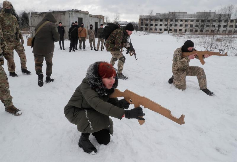 Ejercicio de entrenamiento militar en Ucrania para civiles. Foto de EFE