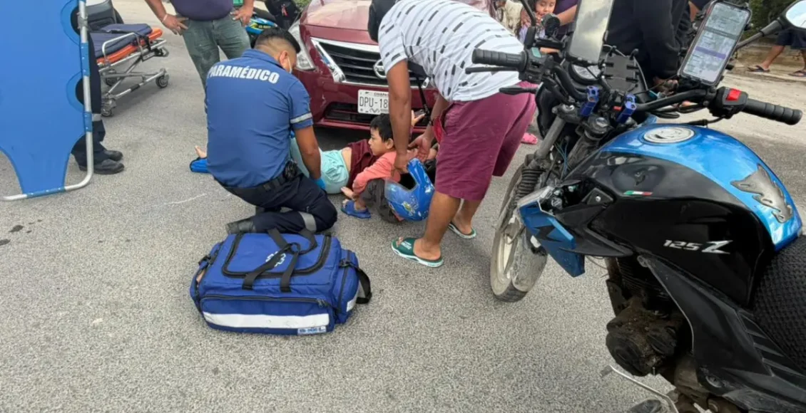 Madre protege a su hijo en accidente vehicular en la colonia Ejido de Tulum