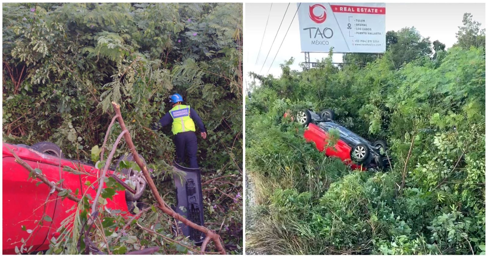 El reporte llegó al número de emergencias 911 alrededor de las 8:00 de la mañana, cuando el chofer de un vehículo Volkswagen Vento, color rojo, con placas USV 862 H, circulaba en dirección hacia el sur, sobre esa carretera y al llegar a la altura de la playa Paamul, perdió el control al pasar una curva.