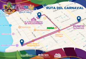 La Presidenta del Comité Organizador del Carnaval informó sobre el cierre parcial de vialidades al paso de las comparsas los días 25, 26 y 28 desde el Bulevar Playa del Carmen sobre la avenida Constituyentes, hasta la zona federal marítima, y de vuelta para incorporarse a la avenida 30 hasta la calle 8 Norte, para ingresar a la explanada de la Plaza Cívica 28 de Julio, frente al Palacio Municipal de Solidaridad.