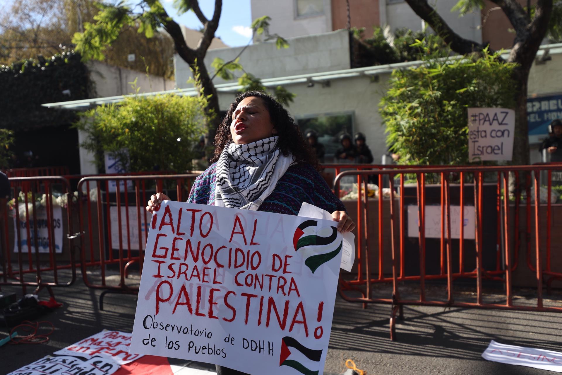 Manifestantes piden “alto al genocidio palestino” en la Embajada de Israel en MéxicoManifestantes piden “alto al genocidio palestino” en la Embajada de Israel en México