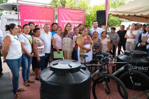 Como parte de los resultados de la audiencia, 15 familias de Dos Aguadas, Adolfo López Mateos, Bulukax y la cabecera recibieron láminas de zinc, en tanto que Loida Ramos Baez, Alexia Gómez y María Acosta Chacón, de Dziuché, La Presumida y la cabecera municipal, recibieron paquetes de insumos de bordado y urdido de hamacas, del programa Artesanas del Bienestar.