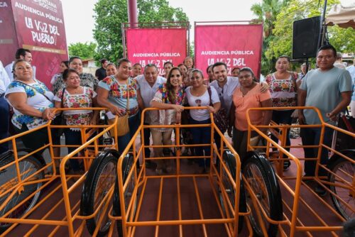 De los Apoyos del Bienestar, a cargo de SEBIEN, la Gobernadora entregó 17 triciclos a beneficiarios de Adolfo López Mateos y de José María Morelos.