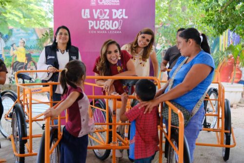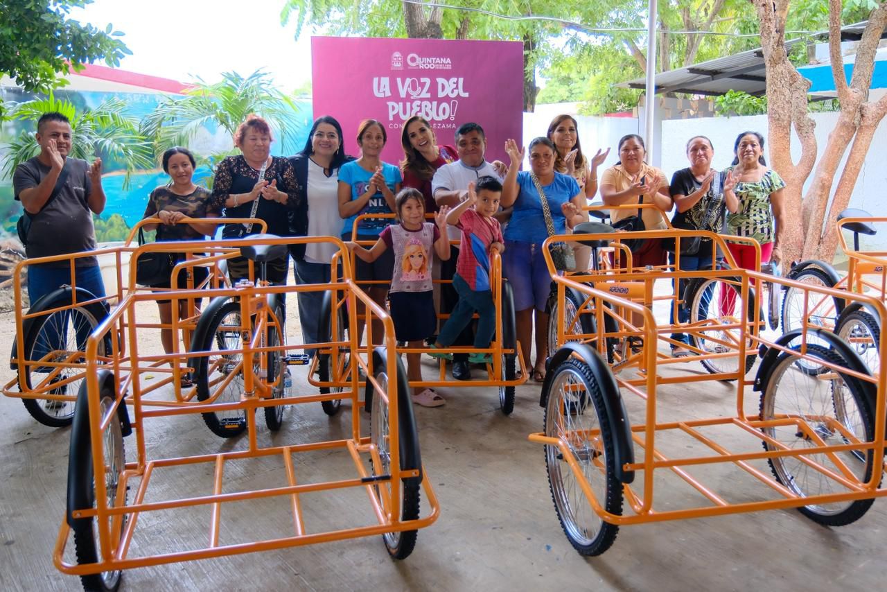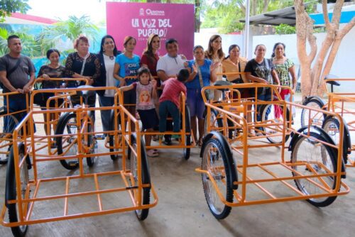 Cancún.- En una acción que permite cerrar brechas de desigualdad y llevar bienestar a 22 familias que más lo necesitan, la gobernadora Mara Lezama Espinosa entregó 11 triciclos y 11 paquetes de láminas de zinc que permitirán mejorar sus condiciones de vida.