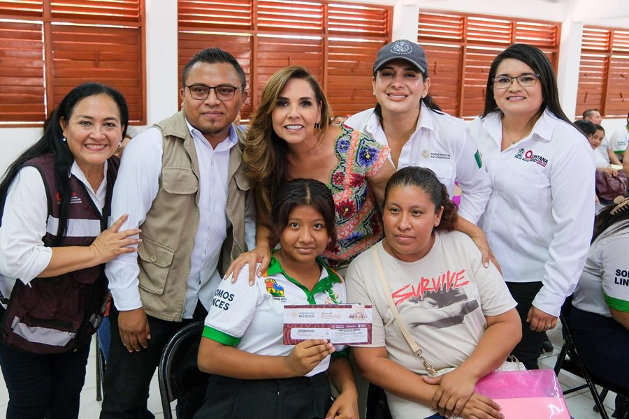 Acompañaron a la Gobernadora en esta entrega de becas José Enrique Xequeb García, director regional de la Secretaría de Bienestar Federal Zona Norte de Quintana Roo; Estefanía Mercado, presidenta municipal de Playa del Carmen; Elda Xix Euán, secretaria de Educación en Quintana Roo; Silvia Mendoza, directora general del CECyTE Quintana Roo, y Eduardo Asencio, presidente honorario del DIF en Playa del Carmen.