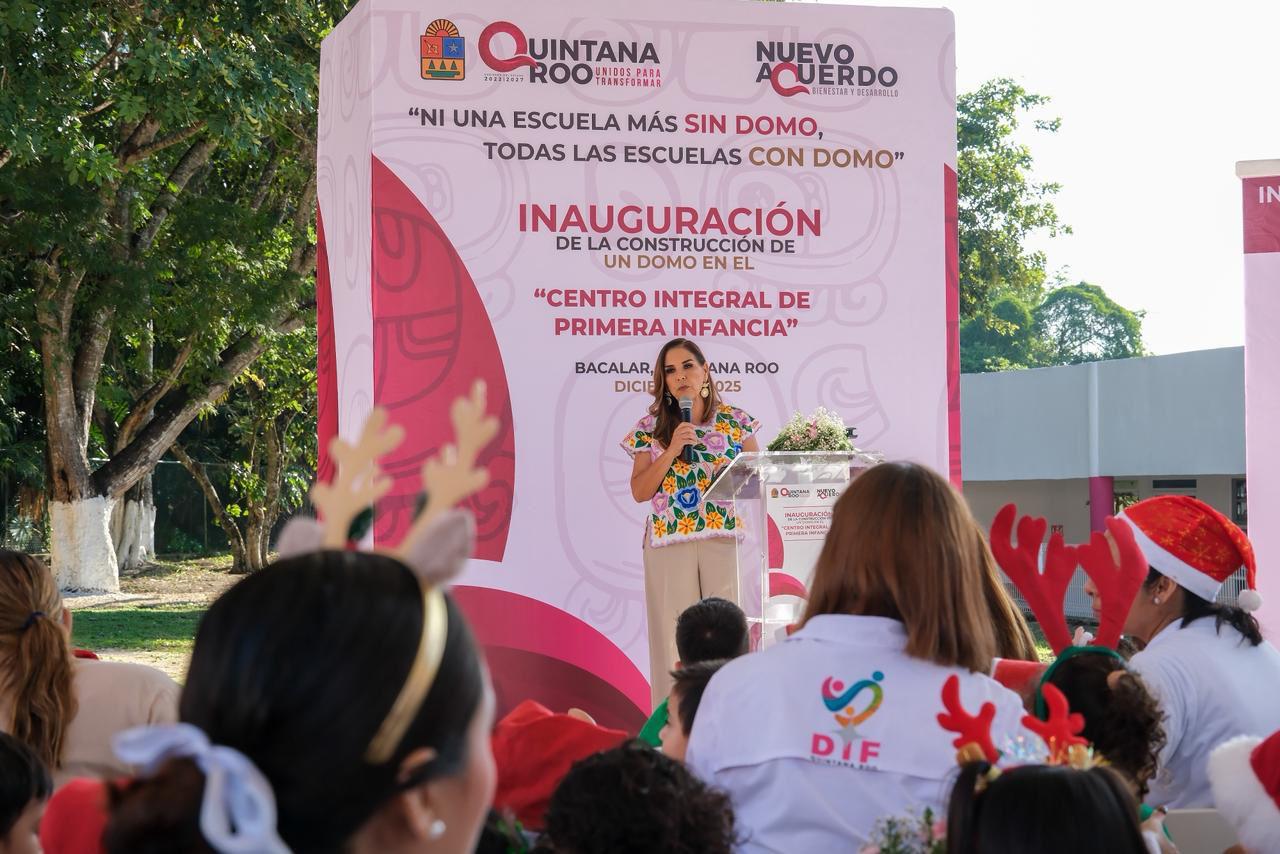 Bacalar.- En respuesta a peticiones de madres de familia, cuidadoras, trabajadoras y trabajadores, la gobernadora Mara Lezama Espinosa inauguró un nuevo domo en el Centro Integral de Primera Infancia (CIPI) de Bacalar, obra ejecutada por la Secretaría de Obras Públicas (SEOP) que fortalece infraestructura segura para la primera infancia.