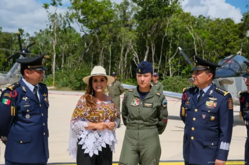 Tulum, 23 de abril de 2026- La gobernadora Mara Lezama Espinosa y el comandante de la Fuerza Aérea Mexicana, General de División PA de EM Román Carmona Landa, encabezaron la inauguración del “Tulum Air Show 2026”, un espectáculo sin precedentes que combina exhibiciones aéreas, encuentros de negocios e innovación tecnológica, desde el Aeropuerto Internacional “Felipe Carrillo Puerto” de Tulum.