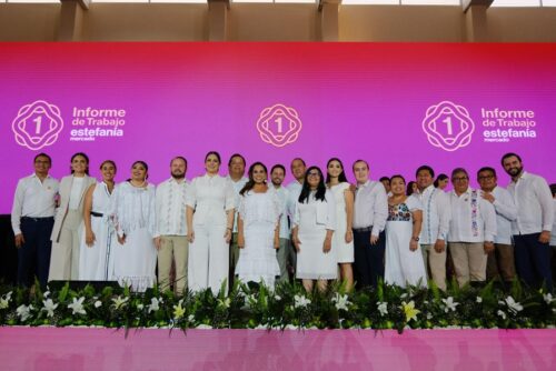 Previo a este evento, en el auditorio “Leona Vicario” del Palacio Municipal se llevó a cabo la Cuarta Sesión Pública y Solemne del Cabildo de Playa del Carmen, la presidenta municipal Estefanía Mercado Asencio entregó la glosa del primer informe de su administración del periodo 2024-2027 a la secretaria de Gobierno, Cristina Torres Gómez, quien asistió en representación de la gobernadora Mara Lezama y a la diputada Lilia Inés Mis Martínez por el Congreso del Estado y Gabriela del Carmen Rodríguez Díaz por el Tribunal Superior de Justicia.