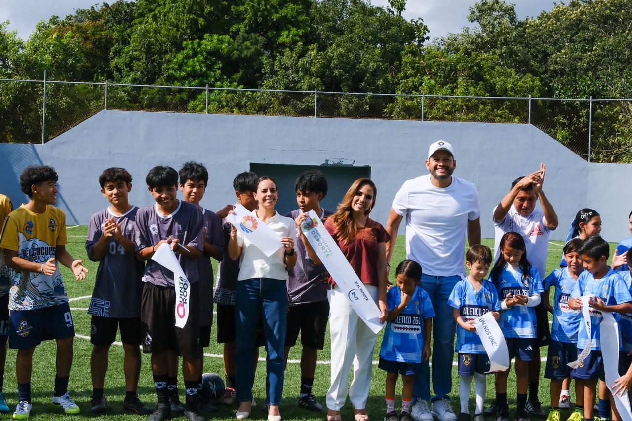 Mara Lezama y Ana Paty Peralta entregan renovada cancha de pasto sintético en la Región 258 de Cancún