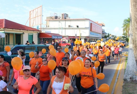 CHETUMAL, Quintana Roo, 30 de noviembre.- ¡Ya basta!, fue la consigna expresada hoy por cientos de personas durante la Caminata contra la Violencia hacia las Mujeres y Niñas, en la que las y los participantes se “pintaron” de color naranja como símbolo del compromiso con la lucha para eliminar la violencia contra las mujeres y las niñas.