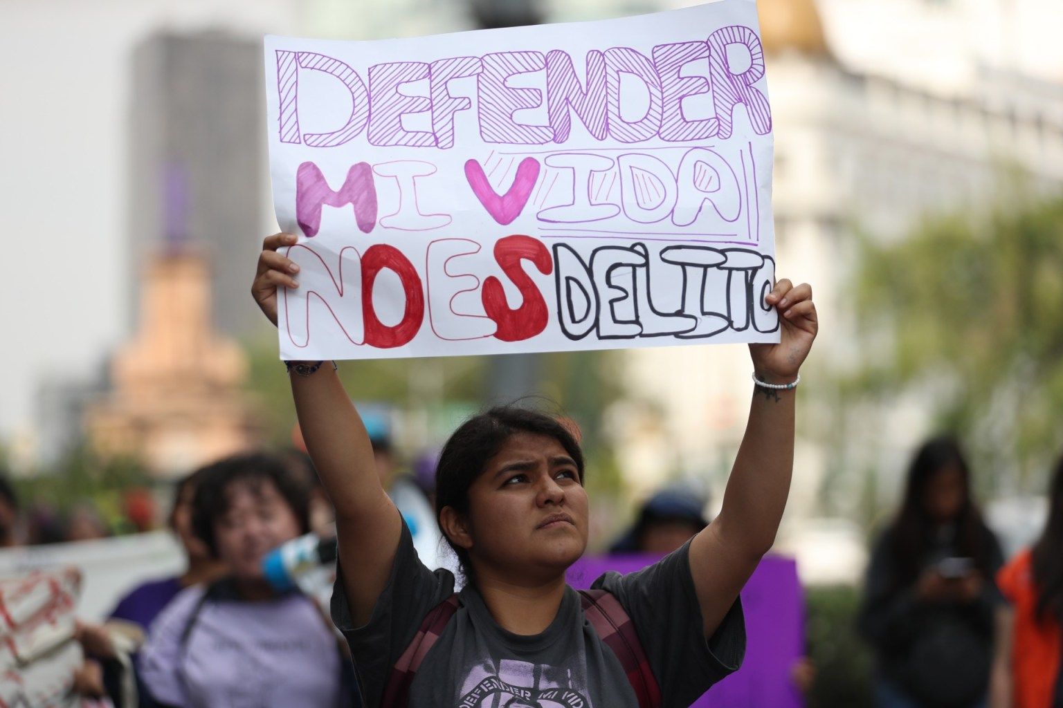 Distintos colectivos de mujeres se manifestaron este viernes en la Ciudad de México para demandar que se revierta la condena de seis años y dos meses en contra de Roxana Ruiz, por asesinar en defensa propia a su violador.