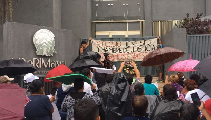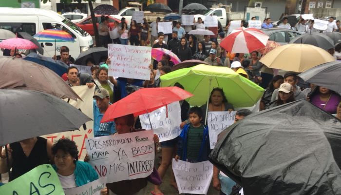 El nutrido grupo además de hacer su primera parada en el busto del político Luis Donaldo Colosio Murrieta, en cuya memoria le pusieron su nombre, siguieron la manifestación en las oficinas de la Desarrolladora de la Riviera Maya sobre la avenida Colosio entre avenidas 30 y 35, exigiendo un freno a tanta corrupción y es necesario la fuerza de la toda la gente, antes de que sean desalojados mediante juicios amañados.